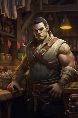 A half-orc blacksmith that specializes in making weapons for the defenders of