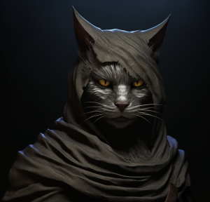 A Black and dark grey furred Tabaxi that was killed by falling rocks in the crypt beneath Mournwaitch.